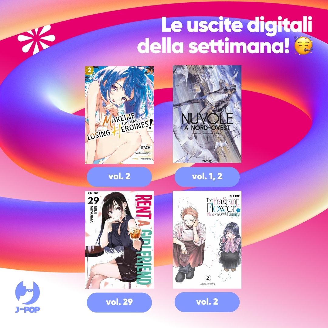 In digitale sbarcano #DRCL midnight children 6, Akane Banashi 14, Il primo amore di Nezumi 3, La strana casa 4, Le 100 ragazze che ti amano tanto tanto tanto tanto tanto 16, Mkeine - Too many losing Heroines 2, Nuvole a nord ovest 1 e 2, Rent a Girlfriend 29, The Fragrant Flower Blooms with Dignity 2.